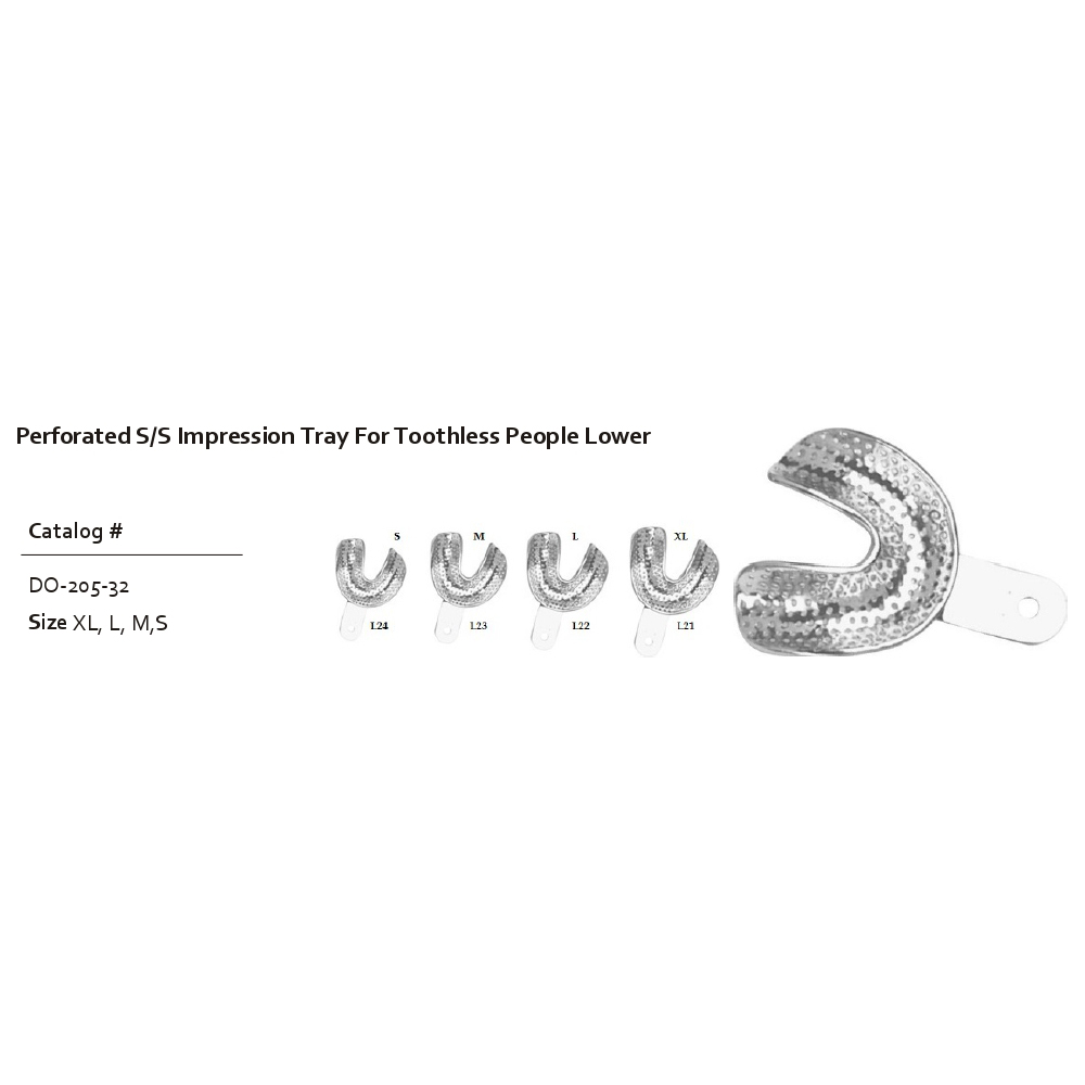 Perforated S or S Impression Tray For Toothless People Lower